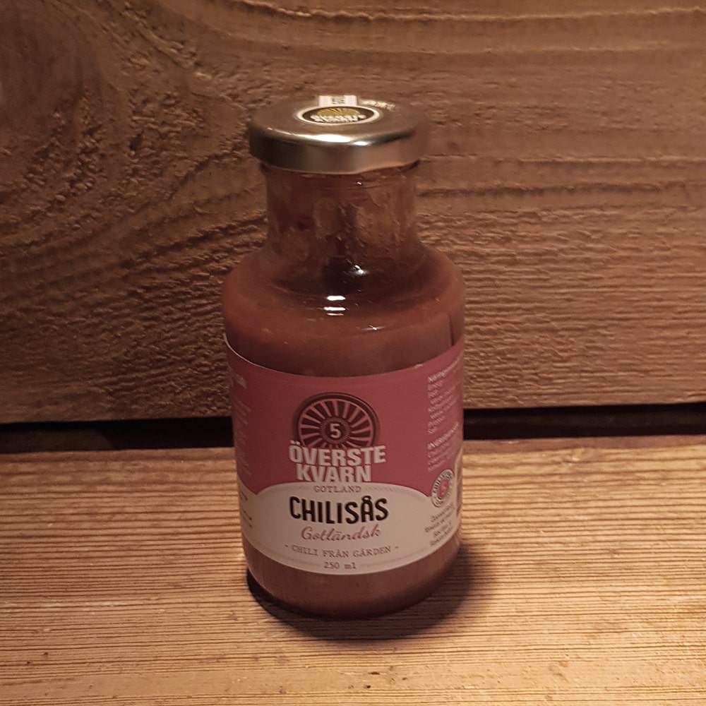 Gotländsk chili, paprika, äppelcidervinäger, ättika, lök, tomater, socker, vitlök, salt.